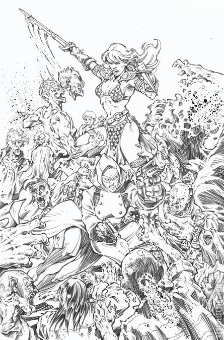 IT’S A MARTIAN STANDOFF! With Sonja leading the way through the sewers of Sin City, Purgatori’s strike team of Miss Fury, Vampirella, and Dejah Thoris are poised to capture the rogue Kaldanian scientist Taak and force him to divulge the cure for the Deadmen plague. But things take a turn for the traitorous when Vampi corners Taak in his Hoover Dam lair and gets a telepathic earful about both his and Dejah’s true intentions!Two-fisted ink-slingers FRED VAN LENTE and MARCO FINNEGAN lay out the good, the bad, and the ugly in Die!namite: Blood Red #4 — featuring quick-draw covers by EJ SU, ROBERTO MELI, EMILIO PILLIU, and WILL ROBSON!