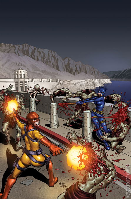 IT’S A MARTIAN STANDOFF! With Sonja leading the way through the sewers of Sin City, Purgatori’s strike team of Miss Fury, Vampirella, and Dejah Thoris are poised to capture the rogue Kaldanian scientist Taak and force him to divulge the cure for the Deadmen plague. But things take a turn for the traitorous when Vampi corners Taak in his Hoover Dam lair and gets a telepathic earful about both his and Dejah’s true intentions!Two-fisted ink-slingers FRED VAN LENTE and MARCO FINNEGAN lay out the good, the bad, and the ugly in Die!namite: Blood Red #4 — featuring quick-draw covers by EJ SU, ROBERTO MELI, EMILIO PILLIU, and WILL ROBSON!