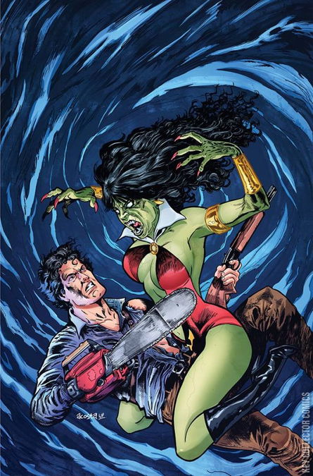 The hit series returns, cuz you can't kill a never-ending army of zombies...you can only hope to beat the $%&# out of them! After tragically losing their first Chosen One against the zombie plague, Vampirella, Miss Fury, and what remains of the Project Superpowers look for a new savior -- but Ash Williams is an even more reluctant Deadite hunter than usual! This time, the Army of Darkness has ray guns, super powers and a brilliant new general: Evil Sonja, who takes her role of Queen of Hel quite seriously!