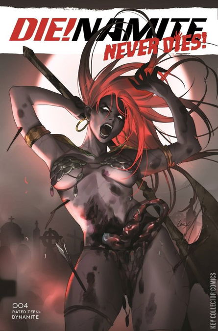 The penultimate issue of the series that critics are saying "has zombies in it"! RED SONJA glows and fights zombies! VAMPIRELLA bites zombies! TARZAN wears very little clothing whilst hitting zombies! Other things happen with zombies too! It's a zombtastic zombiforous zombfest, courtesy of FRED VAN LENTE (Marvel Zombies) and VINCENZO CARRATU (DIE!namite)!