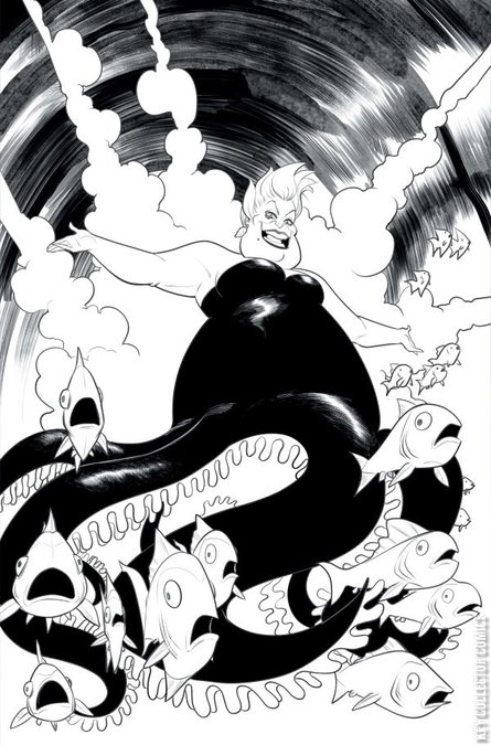 INTO THE BOTTOMLESS BLUE! Writer SHERRI L. SMITH and artist GABRIELE BAGNOLI take readers back beneath the waves for an all-new tale of tentacled treachery! Years before she would meet a young mermaid named Ariel, the formidable Ursula presided over a vast underwater kingdom as one of the Seven Sea Witches. Along with Capricia, Scylla, Charybdis, Melusine, Tiamat, and Vodyanoy, together the septet ruled the world’s oceans with impunity. So when one of Ursula’s royal sisters is suddenly found broken and stripped of all her powers, Ursula takes it as an attack upon their collective authority, and sets out to find and punish the culprit — knowing that, among all the denizens of the deep, only one would dare to challenge the Sea Witches’ reign! Featuring a shimmering school of covers by MIRKA ANDOLFO, JAE LEE & JUNE CHUNG, ROBERT QUINN, ELLERY, and SHATOKI SHIKI, Disney Villains: Ursula #1 plumbs the hidden depths of one of Disney’s most beloved baddies!