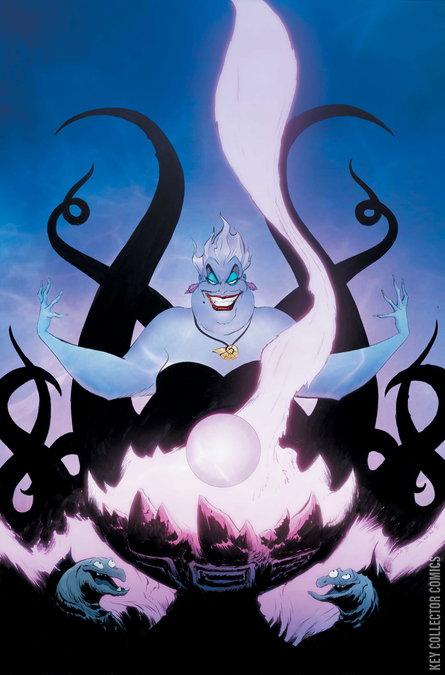 INTO THE BOTTOMLESS BLUE! Writer SHERRI L. SMITH and artist GABRIELE BAGNOLI take readers back beneath the waves for an all-new tale of tentacled treachery! Years before she would meet a young mermaid named Ariel, the formidable Ursula presided over a vast underwater kingdom as one of the Seven Sea Witches. Along with Capricia, Scylla, Charybdis, Melusine, Tiamat, and Vodyanoy, together the septet ruled the world’s oceans with impunity. So when one of Ursula’s royal sisters is suddenly found broken and stripped of all her powers, Ursula takes it as an attack upon their collective authority, and sets out to find and punish the culprit — knowing that, among all the denizens of the deep, only one would dare to challenge the Sea Witches’ reign! Featuring a shimmering school of covers by MIRKA ANDOLFO, JAE LEE & JUNE CHUNG, ROBERT QUINN, ELLERY, and SHATOKI SHIKI, Disney Villains: Ursula #1 plumbs the hidden depths of one of Disney’s most beloved baddies!
