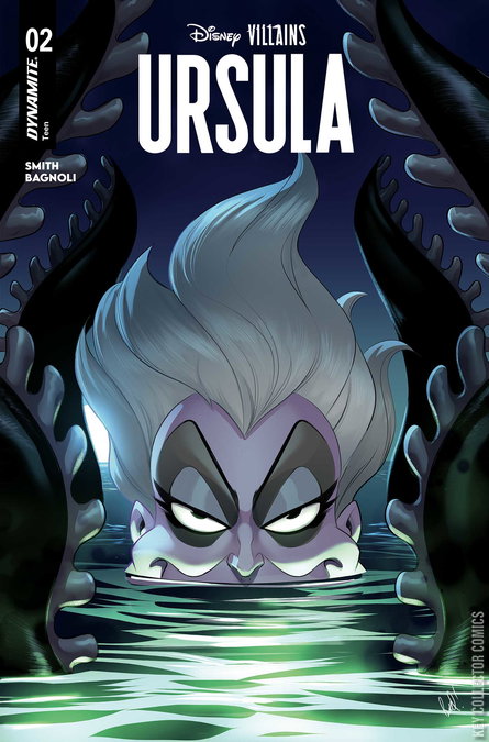 TROUBLED WATERS! Following a mysterious attack that claimed the powers of one of her fellow Sea Witches, Ursula travels to each of her remaining sisters to warn them of the danger. Someone — or something — is hunting the rulers of the world’s oceans, and the wily regent of Atlantica has a hunch about who the culprit might be. But before she can confirm her suspicions, the hidden assailant strikes again, leaving another throne empty and another aquatic kingdom in chaos. As she prepares to face this would-be usurper in her own home waters, Ursula begins to form a new and diabolical scheme — a bold new plan that could ultimately see her ruling over all of the seven seas! Written by SHERRI L. SMITH and illustrated by GABRIELE BAGNOLI, Disney Villains: Ursula #2 features a treasure chest of covers from MIRKA ANDOLFO, JAE LEE & JUNE CHUNG, ROBERT QUINN, SHATOKI SHIKI, and FRANCESCA CARITÀ!