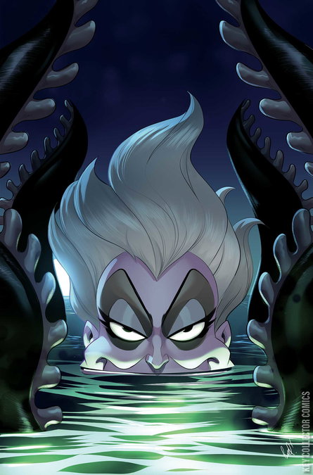 TROUBLED WATERS! Following a mysterious attack that claimed the powers of one of her fellow Sea Witches, Ursula travels to each of her remaining sisters to warn them of the danger. Someone — or something — is hunting the rulers of the world’s oceans, and the wily regent of Atlantica has a hunch about who the culprit might be. But before she can confirm her suspicions, the hidden assailant strikes again, leaving another throne empty and another aquatic kingdom in chaos. As she prepares to face this would-be usurper in her own home waters, Ursula begins to form a new and diabolical scheme — a bold new plan that could ultimately see her ruling over all of the seven seas! Written by SHERRI L. SMITH and illustrated by GABRIELE BAGNOLI, Disney Villains: Ursula #2 features a treasure chest of covers from MIRKA ANDOLFO, JAE LEE & JUNE CHUNG, ROBERT QUINN, SHATOKI SHIKI, and FRANCESCA CARITÀ!