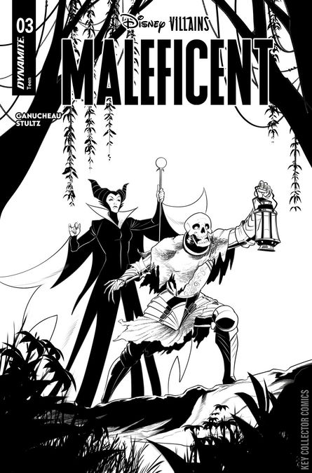 HEAVY METAL THUNDER! Continuing her quest for the hidden relics that promise unlimited magical power, Maleficent and her enigmatic spirit guides venture deeper into the Fae Realm. As they cross the overgrown remains of an ancient battlefield, a skeletal armor-clad figure rises up from the ground, summoned by the dark Queen’s magic to reveal the location of the first artifact: his iron sword. But the reanimated soldier is in no hurry to return to his endless slumber. If he can join Maleficent’s company for one last adventure, he promises that he can secure for her not only his sword, but also the second object of her desire — and he might even be able to help with the dragon that’s guarding it! Seasoned treasure hunters PAULINA GANUCHEAU and THEO STULTZ unearth a wealth of adventure in DISNEY VILLAINS: MALEFICENT VOL. 2 #3 — featuring cleverly cached covers by GANUCHEAU, STULTZ, ELLERY, and ROBERT QUINN!