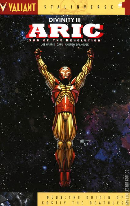 Out of Divinity III: Stalinverse , Valiant's leading legend - the unstoppable X-O Manowar - becomes the supreme fighting force of the CCCP in the next essential special ripped from the pages of the the winter's visionary comics events! From bustling urban centers to the collective farms of the countryside, men, women, and children alike all idolize the same hero of the global Soviet republic: Aric, Son of the Revolution ! Returned to Earth from the stars with the ultimate nuclear deterrent - the indestructible X-O Manowar armor - the champion of socialism has singlehandedly consolidated the state's military and political superiority at home and abroad. But when a surprise attack from a little-known enemy shines an untoward light on the modern-day Soviet Union's darkest secret, will Aric pursue his mission... or justice for the quiet dead of an empire's oppression? The Valiant Universe as we now know it continues to reveal itself... as acclaimed writer Joe Harris ( Snowfall ) and superstar artist David Lafuente ( Ultimate Spider-Man ) present a star-shattering tale of sins, secrets, and tragedy for the global hero of the worldwide Communist state!