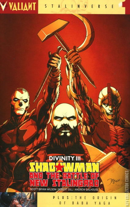 Welcome to the world of today. Welcome to the Stalinverse! The visionary, event-level epic of the winter continues here in an all-new, all-star special introducing the secret weapon of the Soviet Union:Shadowman, agent of the USSR! To save the devastated and oppressed island of New York, Jack Boniface might just have to annihilate it first - by leading an army of Deadside-spawned monstrosities onto the streets to fight the Soviets' super-powered shock troops wherever they stand. But freedom fighters like the one they call Shadowman seldom get the happy ending they deserve... Out of the pages of DIVINITY III: STALINVERSE, discover the haunting origin of Amerika's last resistance when magic clashes with militarymight in a must-read tale of the Valiant Universe as we now know it from red-hot new talent Scott Bryan Wilson and acclaimed artist Robert Gill (BOOK OF DEATH)!