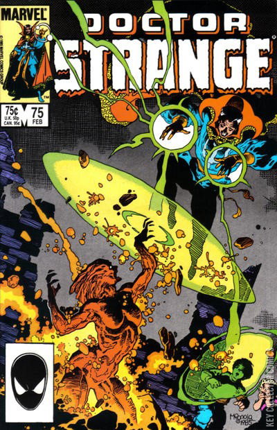 Souls in Torment!, script by Roger Stern (last issue). Strange battles Mephisto, with the Fantastic Four; introduction of Topaz, a woman who has had half her soul stolen; Doctor Strange helps her reclaim it. Continued from Fantastic Four #276-277.