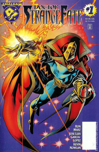 THE DECREES OF FATE In order to save two universes, the young hero known as Access was forced to use the power of Amalgam (see Marvel versus DC (1996) #3). In this issue, Doctor Strange and Doctor Fate (along with a mystery third, revealed on the last page) are merged to create Doctor Strangefate. The mystic Doctor Strangefate wants the man known as Access found and brought before him. To perform this task he enlist the aid of Skulk (Hulk/Solomon Grundy), Jade Nova (Green Lantern/Nova), and the White Witch (Zatanna/Scarlet Witch).
