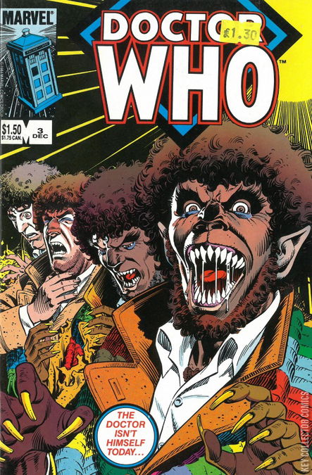 The Dogs of Doom - Parts 1-4 originally printed in Doctor Who Weekly/Magazine #27-30. The Final Quest - originally printed in Doctor Who Weekly/Magazine #8. Plus Throwback: The Soul of a Cyberman. Doctor Who and the Dogs of Doom: Part 1 of 2 - "The Werelox Attack!" Written by Pat Mills and John Wagner. Art and cover by Dave Gibbons The Doctor, Sharon, and K-9 face the sinister Devil-Spawn! Includes a back-up tale featuring the sinister Cyber-Men. Plus, a 3-page The Fans of Doctor Who insert by Walt Simonson. 32 pages, FC. Cover price $1.50.