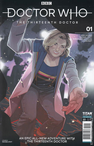 The Doctor regenerates into her most thrilling incarnation yet - played by Jodie Whittaker, and traveling alongside three brand new companions: Graham (Bradley Walsh), Yasmin (Mandip Gill), and Ryan (Tosin Cole)! Experience mind-blowing challenges and dynamic adventures through time and space - right alongside the Doctor and her friends! A new series for a new era on the TARDIS, from a creative team of astounding women - Eisner-nominated writer Jody Houser (Faith, Mother Panic, Star Wars: Rogue One, Spider-Man: Renew Your Vows, Orphan Black, The X-Files: Origins), art by Rachael Stott (Doctor Who, Motherlands, Star Trek/Planet of the Apes) and colors from Enrica Angiolini (Shades of Magic: The Steel Prince, Warhammer 40,000)! Commemorate this once-in-a-lifetime regeneration with thirteen variant covers, from a variety of astounding women comics artists!
