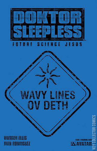 Warren Ellis is unleashed on this all-new, on-going, monthly sci-fi series! It's the near future. No-one has their flying car. Everyone feels cheated. What America needs now is a Mad Scientist. A city with a secret is shocked out of its apathy by the return of a young technological genius who has reinvented himself as Doktor Sleepless. But perhaps he never left and perhaps his planned new future doesn't include the city. For fans of Ellis' fantastic sci-fi tales and have missed the absence of Transmetropolitan, this series is what the Doktor ordered! The issue is available with a regular cover by series artist Ivan Rodriguez, or wraparound cover by Raulo Caceres, a signed poster edition which features a Doktor Sleepless poster signed by Warren Ellis himself, and also a rare 1-in-15 Future Warning Sign cover.