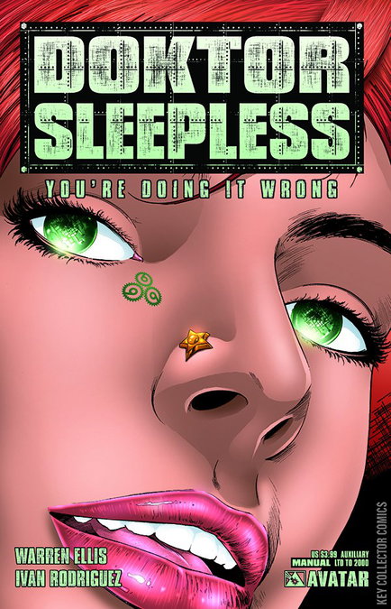 The Doktor is back in ? print that is. The sold-out Doktor Sleepless #1 is now available as part of this special Manual #1. Here is the perfect way to check out the new on-going Ellis epic that has everyone talking, and now it is ads-free, full of extra material, and still the original cover price! As well as the full #1, the Doktor Sleepless Manual comes with ten full pages of back matter, including extended information (and perhaps a few clues…) on the technology and locales of Heavenside written by Warren Ellis for the doktorsleepless.com datashadow, and several all-new full-page paintings from maestro Felipe Massafera! This ideal entry point is available with a Regular cover by Jacen Burrows, a Painted Wraparound cover by Massafera, and a limited 1-in-15 Warning Sign.