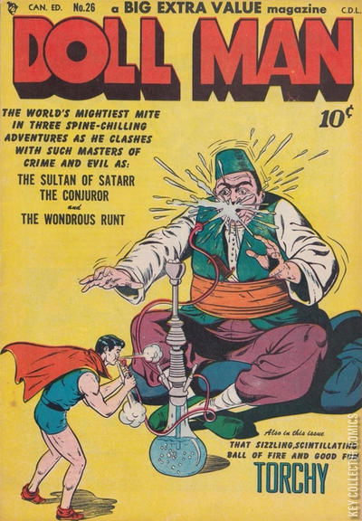 Home / Bell Features / Doll Man / Doll Man #26 Bell Features Released February 1950 Doll Man #26 Add to Collection Want It Synopsis No synopsis available. Issue 26 of 47 Add to Collection Buy it on eBay Buy on eBay Low $25 Mid $75 High $250 Synopsis No synopsis available. Details Series Doll Man Cover Date February 1950 Pages N/A UPC N/A Cover Price N/A Final Order Cutoff N/A Creators Cover Artist Dan Zolnerowich Price Guide Log in or subscribe to access detailed graded price information and market insights. Log In Subscribe