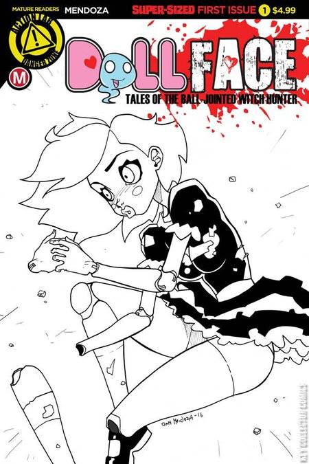 Debuting at Halloween ComicFest, creators Bryan Seaton and Dan Mendoza (Zombie Tramp) unleash the all-new breakout character DollFace in her own ongoing series with issues 1 & 2 combined into this special double-sized issue! In the town of Boston, a witch-hunter lurks among the shadows, but this witch-hunter is like none you've ever seen. She is Lila, a 17th century soul that has been transported into present time and into the body of a life size, ball jointed doll, created by a couple of MIT students trying to use technology and a 3D printer to create the perfect women. Join in this super-sized debut issue and learn how she came to be known as DollFace, the ball jointed witch hunter.