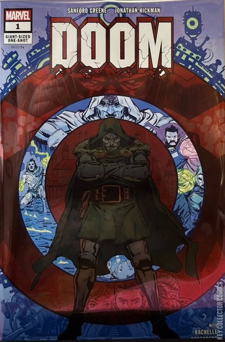 IN THE NEAR FUTURE…DOOM ALONE MUST SAVE THE MARVEL UNIVERSE! Legendary creators Jonathan Hickman (ULTIMATE SPIDER-MAN, G.O.D.S.) and Sanford Greene (Bitter Root) send Doctor Doom on a journey unlike any he has undertaken before! With Valeria Richards at his side, Doom goes on a quest to harness more power than any human has ever wielded before in order to try to stop Galactus from bringing about the death of the universe!