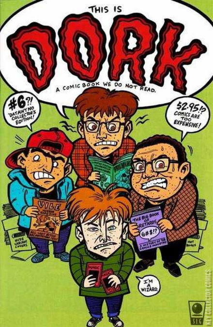 Home / SLG / Dork / Dork #6 SLG Released May 1998 Dork #6 Add to Collection Want It Synopsis No synopsis available. Add to Collection Buy it on eBay Buy on eBay Low $1 Mid $2 High $3 Synopsis No synopsis available. Details Series Dork Cover Date May 1998 Pages N/A UPC N/A Cover Price N/A Final Orders Cutoff N/A Creators Writer Evan Dorkin Artist Evan Dorkin Price Guide Log in or subscribe to access detailed graded price information and market insights. Log In Subscribe