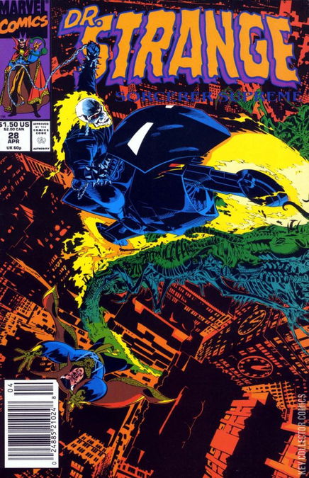 "Strange Tales!" Part 2 of 2. Guest-starring Ghost Rider. Story Roy and Dann Thomas. Art by Chris Marrinan and Mark McKenna. Cover by Michael golden. Story continued from Ghost Rider #12. Can the Sorcerer Supreme and the Spirit of Vengeance play nice long enough to thwart evil?