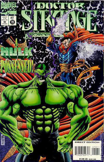 Dr. Strange gets mystically split into good and bad, evil Strange posesses Hulk, to be continued.