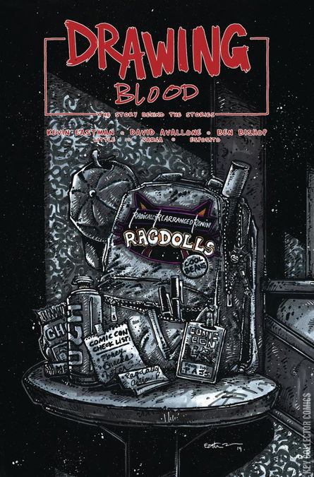 The senses-shattering, pulse-pounding finale of the first Drawing Blood story arc! Shane "Books" Bookman has to face the "Wrath of Cons," as the mogul making the Ragdolls movie gives a disastrous interview on the first day of New York Comic Con... and a legion of loyal fans are after Books' head! Don't cross those cosplayers, man! Co-created by Kevin Eastman (Teenage Mutant Ninja Turtles)!