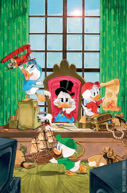 With the help of Duckburg's head librarian, Miss Bookbeak, Scrooge McDuck and his nephews Huey, Dewey, and Louie have found the location of the greatest treasure in the world on a long-forgotten map - and it turns out to be right in their own backyard! After spending days exploring every corner of Duckburg, from its prisons to its movie palaces, the quartet of eager entrepreneurs set off to claim their final prize at the spot marked 'X' - with Uncle Scrooge providing a history of the monument they're making for along the way! Savvy tour guide BRANDON MONTCLARE and cunning cartographer TOMMASO RONDA chart a scenic course through space, time, and memory in DuckTales #5 - a route richly reflected in newly minted covers by RONDA, IVAN BIGARELLA, FRANCESCO TOMASELLI, CARLO LAURO, and ALAN QUAH!
