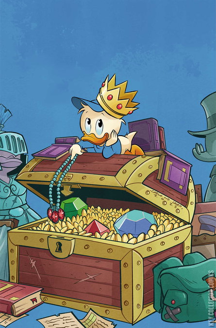 ALWAYS EXPECT THE UNEXPECTED! Huey, Dewey, and Louie have been preparing all summer for the Junior Woodchuck Jamboree, and with the help of their Uncle Scrooge they’re hoping to finally earn their Finders-Keeper merit badge! But when the boys are forced to bring little Webby along on their camping trip, things take a dire turn when they take a wrong turn in the woods — leaving an ill-prepared Doofus Drake to try and rescue Webby as well as his fellow Woodchucks! Grand Moguls BRANDON MONTCLARE and TOMMASO RONDA delve deep into the Junior Woodchuck Guidebook for DuckTales #9 — with covers cross-indexed by RONDA, IVAN BIGARELLA, GIULIA LORMURNO, CARLO LAURO, and DREW MOSS!