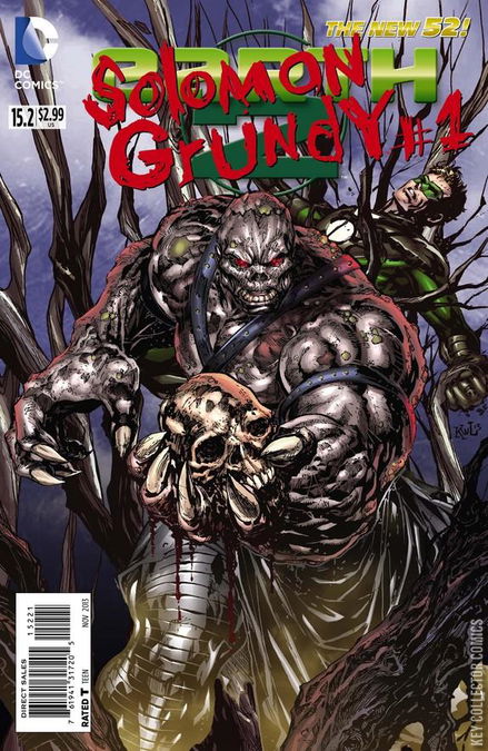 "WHERE THE RIVER RAN RED" Grundy hates green. He hates life, and he hates Green Lantern most of all! So what made Grundy this way? Find out in the secret origin of Solomon Grundy!