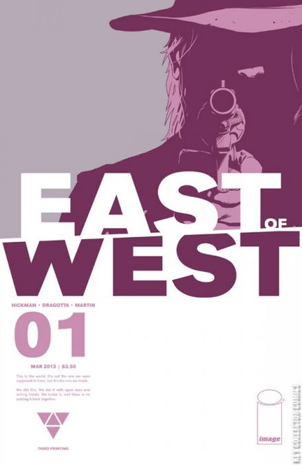 OUT OF THE WASTELAND The things that divide us are stronger than the things that unite us. A Sci-Fi Western set in a dystopian America where all hope for the future rests in the Four Horsemen of the Apocalypse... who just happen to be trying to kill the President of the United States. One of the most exciting new books of the year, this is EAST OF WEST, a brand new, ongoing, monthly comic from the award-winning team of Marvel's FF , JONATHAN HICKMAN and NICK DRAGOTTA.