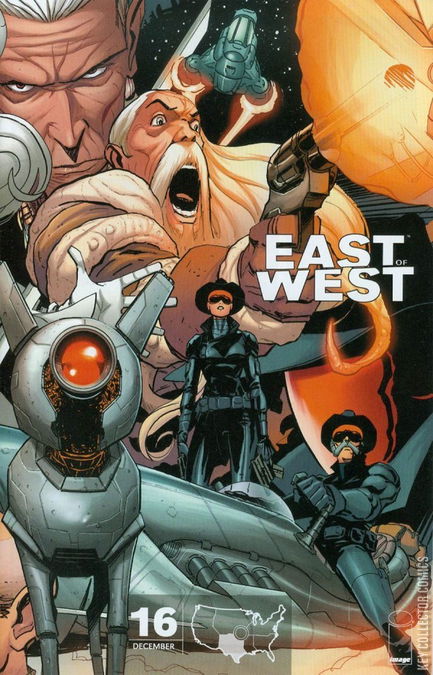 LET IT BURN YEAR TWO begins in the over-sized EAST OF WEST #16! Following the dramatic conclusion of YEAR ONE, the Great Beast now roams the fractured United States of America. Deep into an all-consuming war between the splintered nations, the Four Horsemen move to further their individual agendas while resisting the inevitability of The Message.
