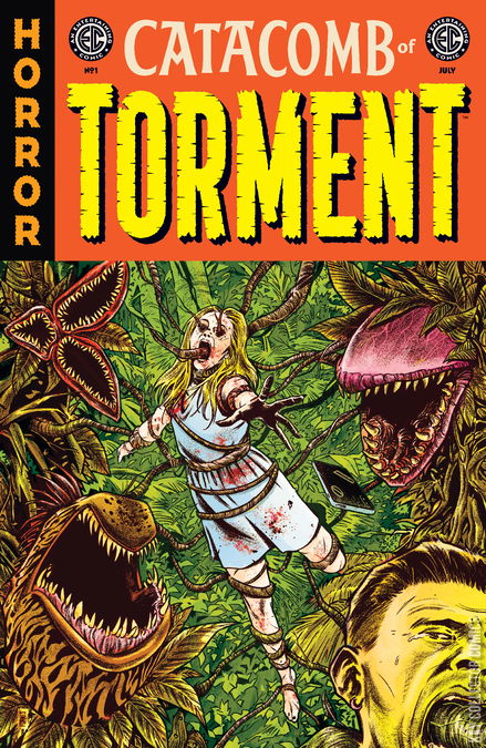 BEHOLD: A BLOODY NEW ONGOING SERIES! Out of the ashes of EPITAPHS FROM THE ABYSS, we usher THE TORMENTOR- a new horror host with an unhealthy interest in human anatomy- into the shadow-strewn halls of EC Comics history for our next monthly horror anthology! Hold onto your head (if it's still attached) . . . because no one escapes THE CATACOMB OF TORMENT! For Her Royal Travesty of Pain's first request: Master storytellers John Arcudi (B.P.R.D.) & Tonci Zonjic (Black Hammer: Skulldigger & Skeleton Boy), Matt Kindt (BRZRKR) & David Lapham (Stray Bullets), and Marguerite Bennett (Batwoman) & Dan McDaid (Shazam!) each take turns manning the rack and turning the red-hot irons for three all-new and blisteringly brutal tales of mayhem and malice in the undying EC tradition! Plus, as an added bonus: A surprise classic from the EC vaults, painstakingly remastered and newly restored to its original coloring. The critics are already saying, "This is literal torture" and "Please make it stop!" Pick up this fearful 40-PAGE FIRST ISSUE- and the Tormentor might just consider letting them go!