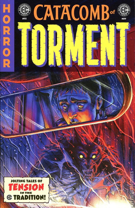 Feeling the rusty shears of eager anticipation as they coarsely cut away your tendons of dread? You’ve come to the right place . . . because EC Comics is serving another tortuous session of frightful delights with the CATACOMB OF TORMENT!Prepare to be mortified—literally—as manacled writers Christopher Cantwell (Out of Alcatraz), Evan Dorkin (Beasts of Burden), and Paul Tobin (The Witcher) are forced to turn the crank and twist the tension-wracked fingertips of artists PJ Holden (2000 AD), Lukas Ketner (Count Crowley), and Dan McDaid (Epitaphs from the Abyss) into blood-spattered spectacle! Sound like fun? Our beloved host, the Tormentor, sure thinks so!
