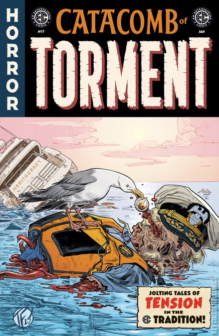 Happy Ghoul Year! Any resolutions? HOW ABOUT READING MORE EC COMICS?! You’re in luck—the Tormentor has been saving a blood-drenched new issue of CATACOMB OF TORMENT just for you! The centerpiece of this month’s joyously depraved New Year’s revelry: Join writers Meghan Fitzmartin (Tim Drake: Robin), Sarah Gailey (Buffy the Vampire Slayer), and Greg Pak (World War Hulk) as they raise—and drop!—the guillotine on their terrifyingly talented artistic collaborators, including Eric Battle (Hardware), Tom Fowler (The Books of Magic), and Sami Kivela (Abbott)! Heads will roll! (That’s what we were hoping for, heh heh!)