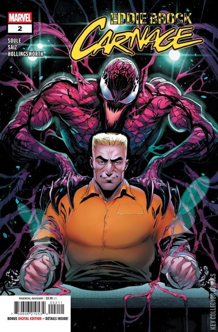 THE RIGHT TO REMAIN VIOLENT! When Eddie Brock walks into a police station and asks to be arrested, you know there's going to be some trouble. When Eddie also happens to be bonded to Carnage? It's going to be a bloody nightmare. The most lethal protector of all continues his deadly mission! PARENTAL ADVISORY