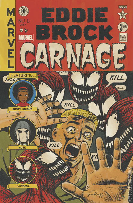 UNCONTROLLABLE CARNAGE! Eddie is losing his grip on Carnage's powers and bloodlust. Can he keep the symbiote's baser instincts at bay until they locate a suitable target? Or will innocent people begin to pay for Eddie's hubris? Meanwhile, back in Chicago, Eddie and Carnage go from Hunter to Hunted as MUSE closes in on who destroyed his studio.