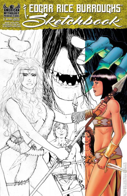 The fantastic worlds, heroes, and villains of American Mythology's critically acclaimed Edgar Rice Burroughs line of comics come to life before your very eyes in this incredible behind-the-scenes sketchbook! Jam-packed with production illustrations by ERB comics writer and artist Mike Wolfer, the Edgar Rice Burroughs Sketchbook reveals for the first time Wolfer's rough conceptualizations of costumes, locations, and gadgets, along with the final illustrated realizations of those blueprints as they appear in the pages of The Land That Time Forgot, Pellucidar, The Monster Men, The Moon Maid, and Carson of Venus by a slew of American Mythology's greatest artistic talents. Containing not only never-before-seen sketches, the Edgar Rice Burroughs Sketchbook is filled with notes and anecdotes about the creation of Wolfer's ERB scripts, along with vital tips and tricks for comics scriptwriters and illustrators, culled from Wolfer's 30+ years in the industry! And just wait until you see the photographs of artist Roy Allan Martinez's miniature, cardboard construction of the entire jungle compound seen in The Monster Men! There's something for everyone is this unique, fun, and informative 'making of' issue!