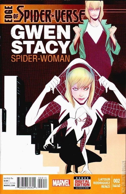 GWEN STACY: SPIDER-WOMAN In one universe, it wasn’t Peter Parker bitten by the radioactive Spider, but Gwen Stacy! She’s smart, charming and can lift a car-- Just don’t tell her Police Chief father! How is she involved in Spider-Verse? Seeds of AMAZING SPIDER-MAN #9 are planted here! SPIDER-VERSE continues in The Superior Spider-Man #33
