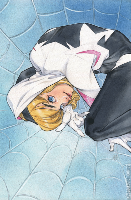 GWEN STACY: SPIDER-WOMAN In one universe, it wasn’t Peter Parker bitten by the radioactive Spider, but Gwen Stacy! She’s smart, charming and can lift a car-- Just don’t tell her Police Chief father! How is she involved in Spider-Verse? Seeds of AMAZING SPIDER-MAN #9 are planted here! SPIDER-VERSE continues in The Superior Spider-Man #33