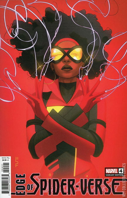 Witness the comic-book debut of the SPIDER-WOMAN from the smash hit ACROSS THE SPIDER-VERSE MOVIE! That's right, the Jessica Drew that stole that great movie is coming to the comics with a story from NILAH MAGRUDER and MARCUS WILLIAMS working with the filmmakers! And if that's not enough, witness the true birth of the Spider-Society setting up the next SPIDER-VERSE storytelling epic! Rated T+
