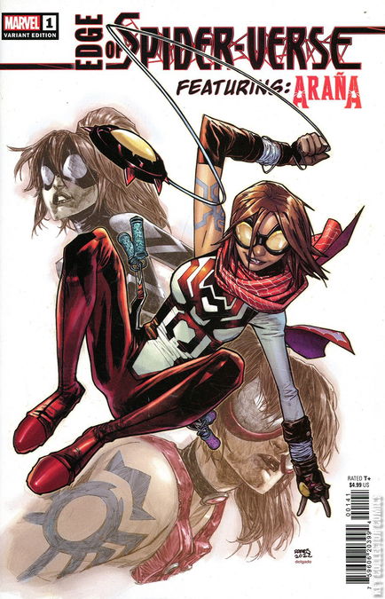 SOMETHING WICKED THIS WAY COMES / THE HERO WITHIN / SPIDER-REX!! / MY DAME... MY DESTINY THE END OF THE SPIDER-VERSE IS COMING! edge (’ej) noun – 1. outermost limit of an object. – 2. the sharp side of a blade. The leading edge of the Spider-Verse brought you Spider-Gwen and Peni Parker. This final edge will introduce you to some of the most important characters in the future of the Spider-Verse…but it will also slice the final strand of the web. IN THIS ISSUE: SPIDER-MAN NOIR! ARAÑA’S NEW STATUS QUO! SPIDER-REX AND MORE!