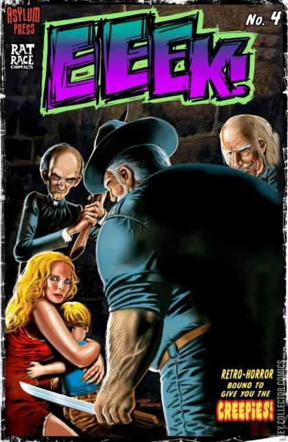 This retro-style anthology of all-new horror tales is guaranteed to give you the eeries and the creepies! Taking a pinch of black humour from EC comics and mixing it with the art stylings of House of Mystery and Warren comics, EEEK! blends a heady broth that hits you like a burning incense stick to the retina. Jason Paulos delivers the goods with tales of revenge, zombies, vampires, ghouls and monsters. Each tale drawn in a different style reminiscent of the B&W horror mags of the 70's and 80's. We begin with "In Too Deep" where rival treasure hunters plumb the depths of the ocean ... and their very souls! Our second helping is "Confessions of a Thrill Killer" where we ask the reader; have you ever felt like murdering a stranger in cold blood? And finally, "Like Mother Like Son", Tommy Lomax runs away from home to find his father ... only to discover a terrible secret! Plus a horrific Jason Paulos EEEK pin-up gallery!