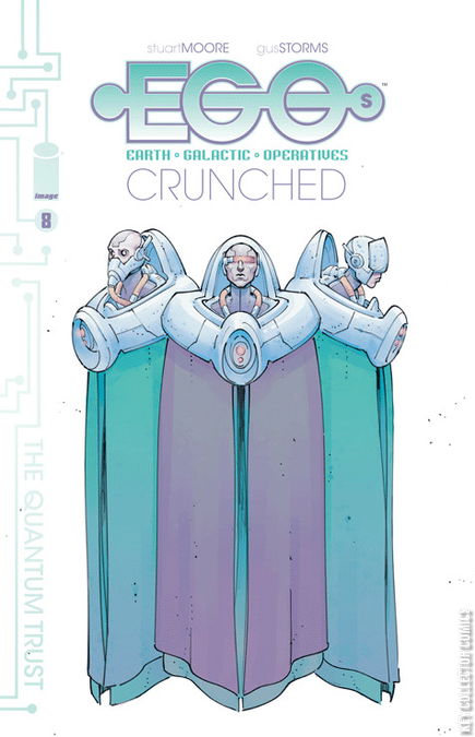 As 'CRUNCHED' barrels toward next issue's shocking conclusion, the EGOs' investigation leads them to the Quantum Trust-mysterious, all-powerful bankers to the galaxy.