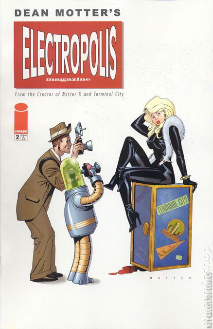 "The Infernal Machine" Episode 2. Things are heating up in the city where "Every Day is the Day After Tomorrow" as Anesta Robbins and robot Menlo Park suddenly find themselves investigating the decades-old murder of their late boss, private eye Jacob Ladder. Police inspector Johnny Picasso also seems interested in re-opening the case, with no shortage of suspects. During a visit to the Color Bar nightclub for the Steppe Sisters Soviet Swing Show, fetishist femme fatale Tess LaCoyle flirts with Menlo, until she is kidnapped from right under his metal nose. There also seems to be some trouble brewing downtown between Mayo Gernsback, the Electricians Union and the power company. All this spell trouble for the citizens of Electropolis.