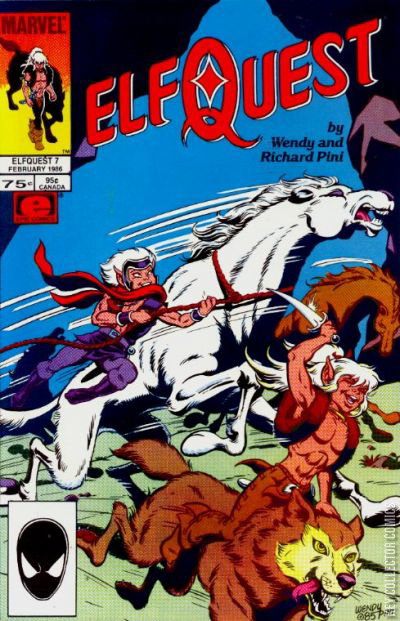 Color reprints of original b&w series. Cover art by Wendy Pini. Voice of the Sun, script by Richard Pini and Wendy Pini, art by Wendy Pini; The Wolfriders confront a Zwoot stampede.
