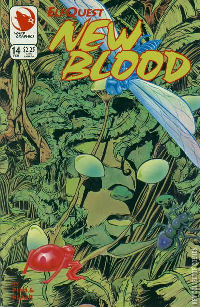 First $2.25 cover price. Cover art by Barry Blair. Forevergreen [part 2], script by Barry Blair and Wendy Pini, art by Barry Blair; Suntop gets a psychic call for help from far away; Windkin flys off to investigate it. Cover and Promo For New Blood #15. 36 pgs. $2.25. Cover price $2.25.