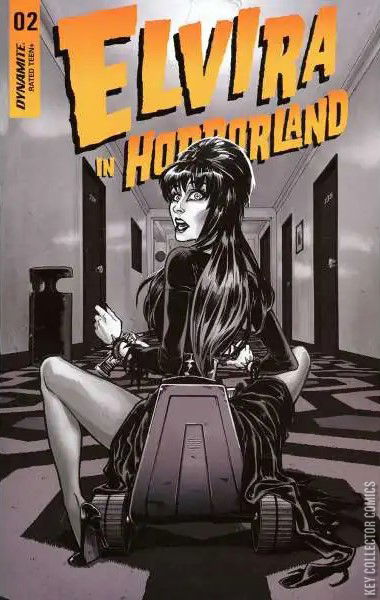Your strange love is rewarded, as Elvira's space odyssey gets a new shine! As the clockworks glow orange, the Mistress of the Dark dons her full metal jacket and follows the paths of glory with her eyes wide shut, awaiting a killer's kiss! Something something Barry Lyndon! Join writer David Avallone (Elvira Meets Vincent Price, Bettie Page: Unbound) and artist Silvia Califano (Star Trek, Judge Dredd) for a comic we call "She's a Kubrick... house." All the fun, thrills and spills under a series of amazing covers by returning artists Dave Acosta, John Royle, series artist Califano and an amazing Elvira photo cover!