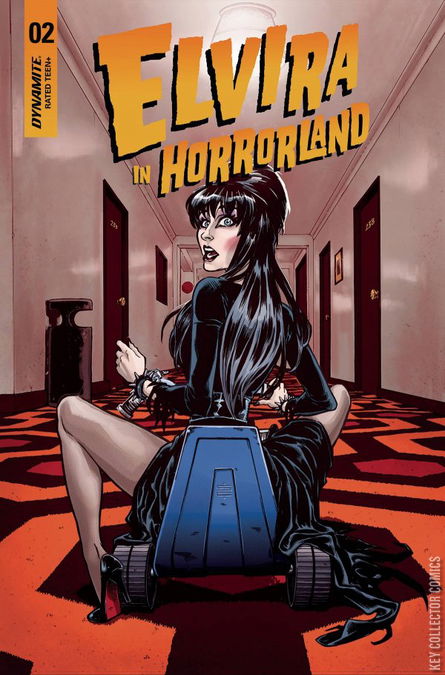Your strange love is rewarded, as Elvira's space odyssey gets a new shine! As the clockworks glow orange, the Mistress of the Dark dons her full metal jacket and follows the paths of glory with her eyes wide shut, awaiting a killer's kiss! Something something Barry Lyndon! Join writer David Avallone (Elvira Meets Vincent Price, Bettie Page: Unbound) and artist Silvia Califano (Star Trek, Judge Dredd) for a comic we call "She's a Kubrick... house." All the fun, thrills and spills under a series of amazing covers by returning artists Dave Acosta, John Royle, series artist Califano and an amazing Elvira photo cover!