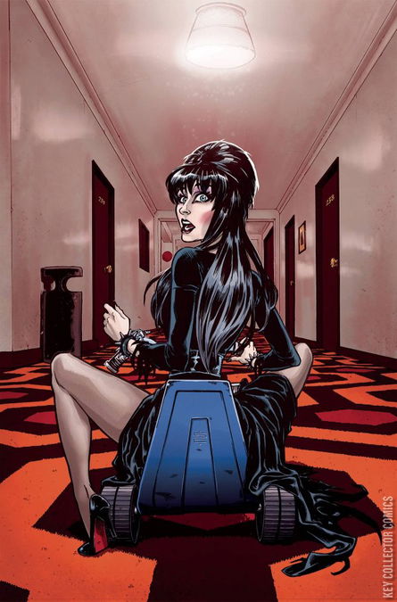 Your strange love is rewarded, as Elvira's space odyssey gets a new shine! As the clockworks glow orange, the Mistress of the Dark dons her full metal jacket and follows the paths of glory with her eyes wide shut, awaiting a killer's kiss! Something something Barry Lyndon! Join writer David Avallone (Elvira Meets Vincent Price, Bettie Page: Unbound) and artist Silvia Califano (Star Trek, Judge Dredd) for a comic we call "She's a Kubrick... house." All the fun, thrills and spills under a series of amazing covers by returning artists Dave Acosta, John Royle, series artist Califano and an amazing Elvira photo cover!