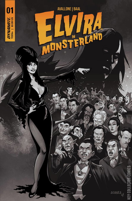 What's scarier than Dracula? ALL THE DRACULAS! Vlad the Impaler is back, and he's raiding the Multiverse of Movies to build a monster army and conquer the world. And only one woman can stop him! Vampirella! But she's busy in her own books� so it's up to Elvira, the Mistress of the Dark, and bane of Vlad's existence, to stop his evil plan! It's monster movie madness horror from writer David Avallone (Elvira in Horrorland, Bettie Page: Unbound) and artist Kewber Bal (Vampirella, Red Rising, Red Sonja). ELVIRA, MISTRESS OF THE DARK: When you hear the name Elvira only one person comes to mind: Horror icon and quintessential symbol of all things spooky, the one and only Mistress of the Dark. Back in 1981, who could have imagined the hostess of a local Horror movie show would become a household name? Elvira was the first horror host ever to be syndicated nationally and has emerged as one of today's most original and outrageous pop culture icons. Elvira's reign as 'Queen of Halloween' has spanned more than three decades and includes an IMAX movie, music CDs, books and more than a thousand licensed products. She co-wrote and starred in the feature films Elvira, Mistress of the Dark and Elvira's Haunted Hills. She has made hundreds of film, television and live appearances - including The Grammy Awards, Saturday Night Live, NBC's Today Show, The Tournament of Roses Parade and reality shows Search for the Next Elvira, RuPaul's Drag Race, Counting Cars, Face Off, Epic Ink and Halloween Wars. She most recently produced and starred in Thirteen Nights of Elvira for Hulu. Played by actress/writer Cassandra Peterson, Elvira has carved out a niche in popular culture that is sure to endure for decades to come.
