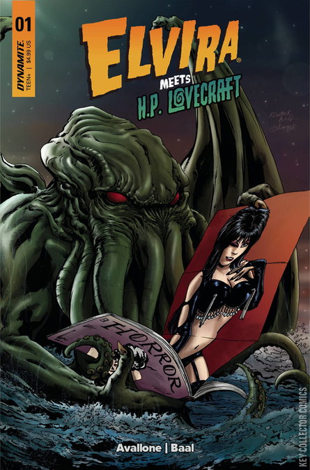 It had to happen someday! Elvira accepts the Collect Call of Cthulhu and finds herself on a comical quest for the last copy of the Necronomicon with the ghost of H.P. Lovecraft. Will she be able to tolerate Lovecraft long enough to save the world from the Great Old Ones? Find out in this tale of cosmic comedy and tentacled terror, from writer David Avallone (Elvira in Monsterland, Bettie Page: Unbound) and artist Kewber Baal (Elvira in Monsterland, Vampirella). Featuring returning cover artists Dave Acosta, interior artist Kewber Baal, along with the return of David Hack and a stunning Elvira photo cover!