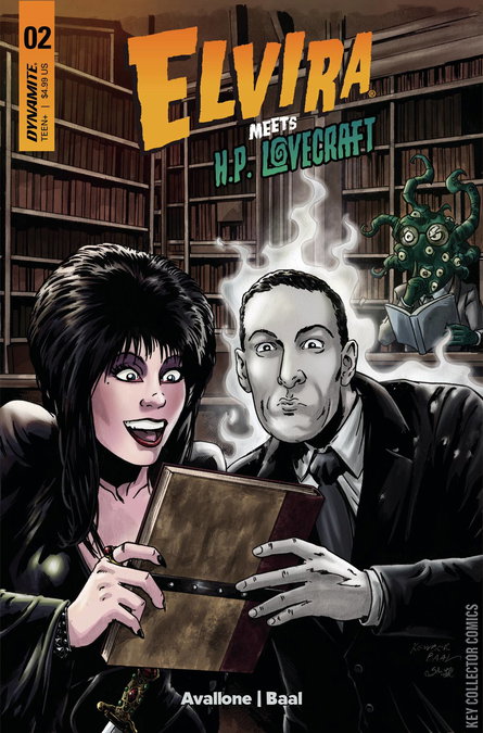 The comedy duo of Elvira, Mistress of the Dark, and Howard Phillips, Neurotic Ghost, take their show on the road to Arkham, Massachusetts! With the Cult of Nyarlathotep hot on their pointy heels, the two horror icons visit storied Miskatonic University - where the last copy of the Necronomicon may be hidden deep in the college library! Secret knowledge is uncovered, hideous space gods are revealed, and late fines go unpaid in this madcap monster mash from writer DAVID AVALLONE (Elvira in Monsterland, Bettie Page: Unbound) and artist KEWBER BAAL (Elvira in Monsterland, Vampirella), with cover artists BAAL, DAVE ACOSTA, and DAVID HACK all returning from the grave, as well as a enchanting Elvira photo cover! ALL COVERS CARDSTOCK